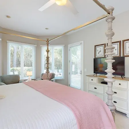 The 5-bedroom 4 Cockle Court Villa Hilton Head Island is located 2.6 miles from swallowtail and offers guests to enjoy their evening on a terrace with a swimming pool. Featuring pool views, this 5-bathroom villa invites guests to visit Sandbox, located approximately 10 minutes' drive away.