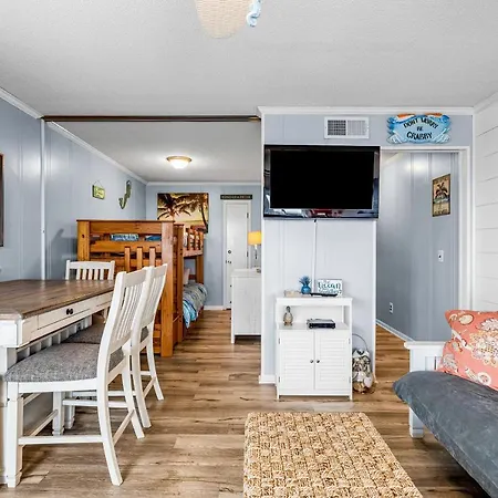 The 61 ft² A Place At The Beach 332 Atlantic Beach apartment is just a 6-minute walk from Fort Macon and welcomes guests with a hot tub. Guests can lounge by a swimming pool before taking a cooling dip.