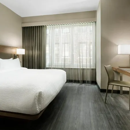 Offering a shared lounge and various recreational opportunities, the 4-star Ac Hotel By Marriott New York Times Square lies in the Manhattan district, 12 minutes' walk from Empire State Building. Featuring 290 rooms with views of the urban, this smoke-free hotel is 3.7 miles from Brooklyn Bridge.