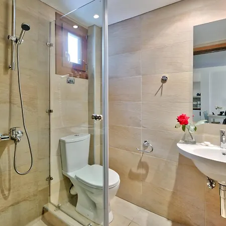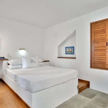 Furnished with a writing table, the 20 rooms also include such conveniences as a flat-screen TV with satellite channels, along with coffee and tea making equipment. Bathrooms inlude a walk-in shower and a separate toilet, and such fine comforts as bath sheets and towels. Some rooms have views of the Aegean Sea.