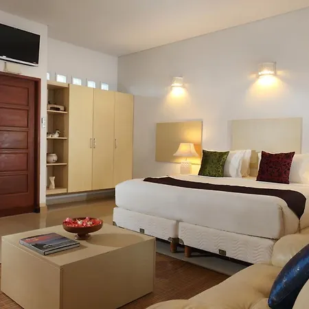 Some of the 24 smoke-free rooms at the Alindra Villas & Spa are furnished with a couch set and a writing table, and appointed with a minibar, tea and coffee-making facilities. Guests can also use a bidet, along with such amenities as dressing gowns and a shower cap. The hotel offers views of the garden from these rooms.