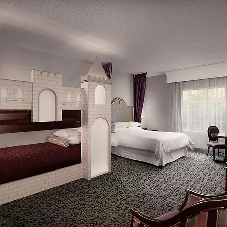 Located approximately 900 feet from Disney California Adventure Park, the Anaheim hotel is also approximately 10 minutes by car from entertainment venues like Business Expo Center Event Venue. Natural attractions in the area include Modjeska Park, 1.9 miles from the family Majestic Garden, and a beach is only 0.7 miles away.