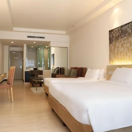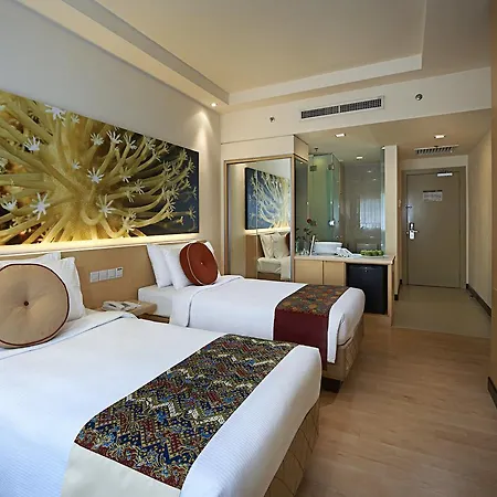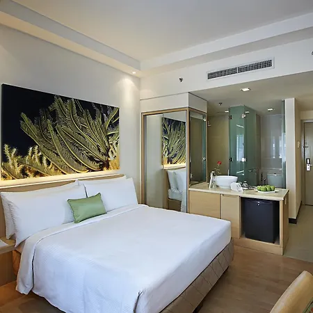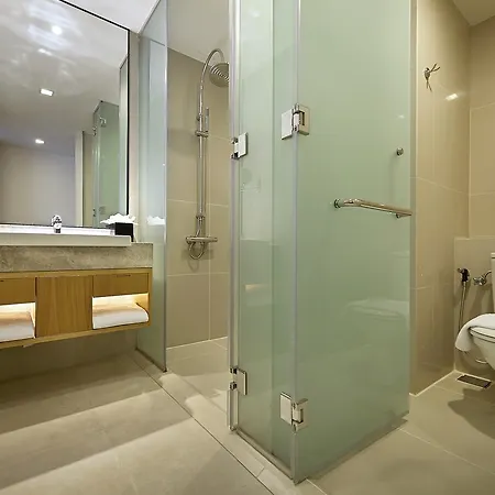 Some rooms at the modern Ansa Hotel Kuala Lumpur are fitted with ironing facilities and an air conditioner, and such self-catering options as a mini bar fridge. They are furnished with queen size beds along with a couch and a writing table. The private bathrooms feature a shower cap and bath sheets.
