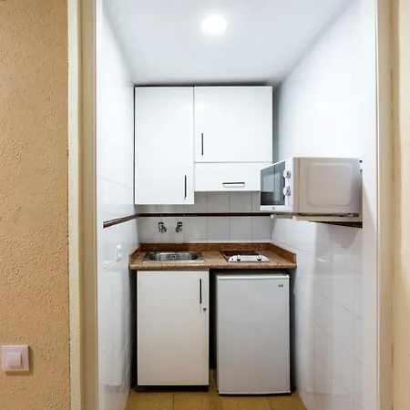 Apartamentos Resitur provides a kitchenette with a microwave, a small refrigerator, and utensils.