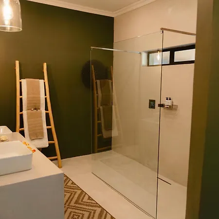 The Hazyview villa also offers a swimming pool along with a shared lounge and a garden terrace.