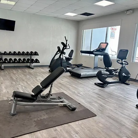 Beach facilities at the Baymont By Wyndham include lounge chairs. Guests can work out in a fitness area during their stay.