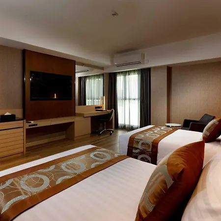The rooms are decorated with a contemporary interior and offer a flat-screen TV with satellite channels, along with coffee/tea making machines. They are furnished with queen size beds or king-size beds along with a couch set. The safe bathrooms come with bathrobes.