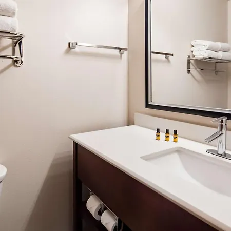 The Best Western Plus Spring Inn & Suites breakfast features eggs, waffles, and meat. The on-site bar features complimentary wireless internet and a TV. Rudy's is 18 miles away.