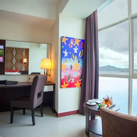 Some of the 187 air-conditioned rooms at beachfront Best Western The Lagoon are furnished with a couch and a cabinet, and appointed with a mini-fridge-bar and a coffee machine. A multi-channel television, as well as comforts as air conditioning are also featured. Bathrooms come with a bidet, a separate toilet, and a shower, along with a hairdryer and a shower cap. The rooms overlook the Celebes Sea.