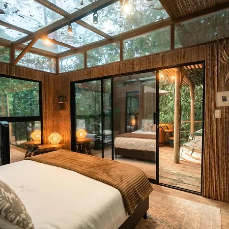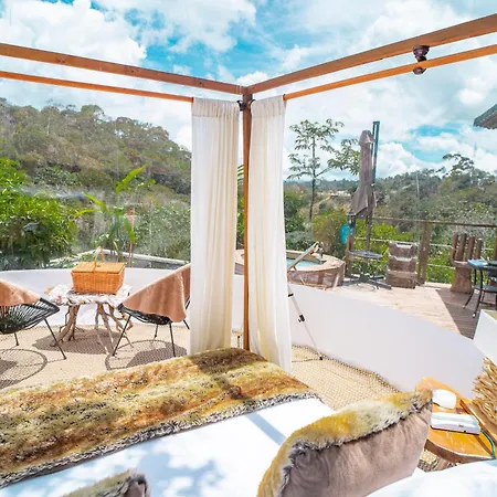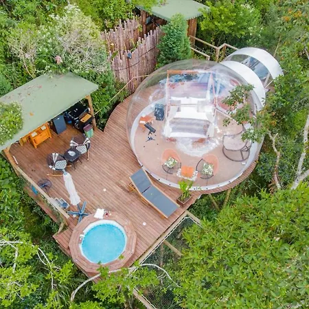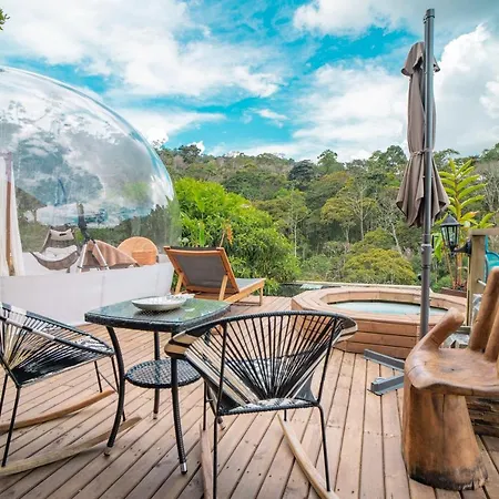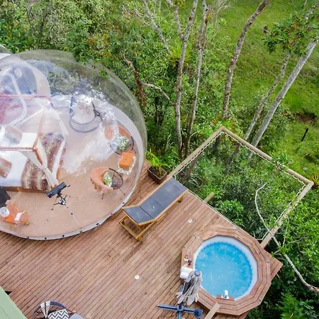 The 8-room Bubblesky Glamping Guatape Hotel villa is situated approximately 25 minutes' stroll from Rock of Guatape and provides a hot tub, ensuring a relaxing stay. Featuring bicycle rentals, the Guatape luxury tent invites guests to visit Plazoleta de Los Zocalos, situated 1.7 miles away.