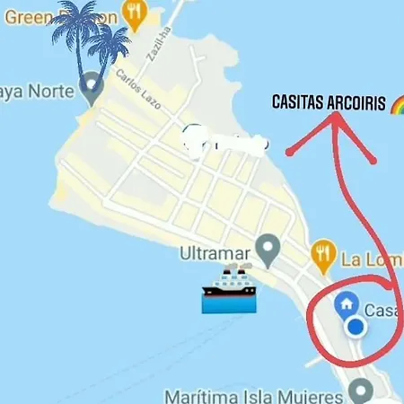 The 7-room "Casitas Arcoiris" Excelente Ubicacion - Petfriendly Apartment Isla Mujeres offers views of the sea and a location approximately 25 minutes by foot from Guadalupe Chapel. The apartment also has a terrace overlooking garden terrace.