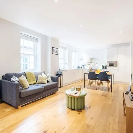 The 2-bedroom apartment is located in the City of London district providing quick access to Darwin Brasserie, which is 0.2 miles away. The British Museum is located approximately 10 minutes away by car.