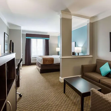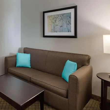 The Comfort Suites At Katy Mills has 88 rooms with a sitting area. A TV set with satellite channels along with coffee/tea making machines are provided. They also have a microwave and a fridge.