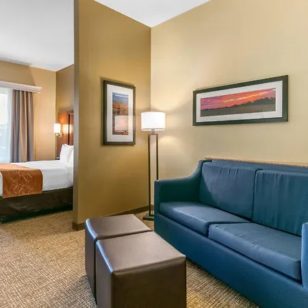 The rooms at Comfort Suites hotel are fitted with an air conditioner as well as coffee/tea making facilities.