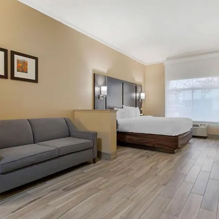 A steam room and a hot tub, along with spa therapy, recreational facilities, and a garden terrace, are featured at the accommodation. The availability of a golf center guarantees guests an active stay at the Comfort Suites Kingwood Houston North Humble 59. Business travelers will appreciate such conveniences as a work desk and complimentary wireless internet access, along with access to a 24/7 business center and a meeting room.
