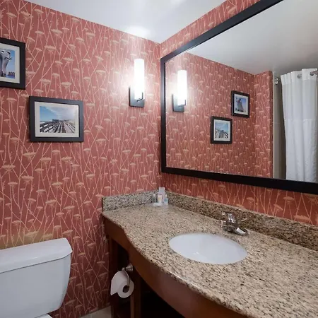 The rooms at the Comfort Suites Suffolk - Chesapeake Suffolk include blackout drapes and an iron with ironing board. Some of them comprise storage and a terrace, furnished with a couch bed and a clothes rack. They come equipped with a coffee machine for self-catering along with free Wi-Fi and cable channels for business and leisure. Featuring a bathtub, a separate toilet, and a shower, the bathrooms also come with hair dryers and bath sheets. The Suffolk hotel offers rooms with views of the town.