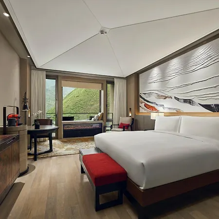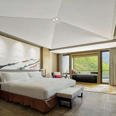 The 5-star Conrad Jiuzhaigou hotel includes 161 rooms overlooking the mountain.