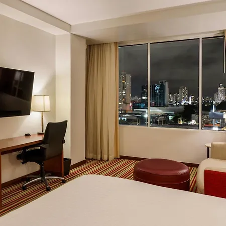 The Courtyard By Marriott Panama Multiplaza Mall welcomes guests to 329 air-conditioned rooms. Some of them come with free wireless internet and a cable satellite TV along with an electric kettle and a mini refrigerator. Certain rooms feature a contemporary interior along with marble flooring. The private bathrooms include a sink, and amenities such as dressing gowns and slippers. You can also enjoy inner courtyard views from some of these contemporary rooms.