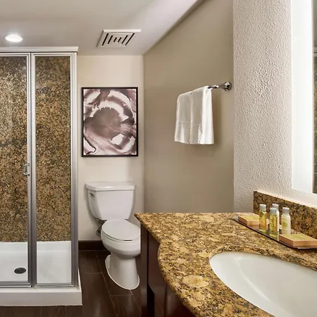 The rooms at the suburban Doubletree By Hilton Fullerton are fitted with ironing facilities and an air conditioner as well as coffee/tea making machines. The rooms at the property also offer contemporary décor.
