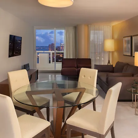 Guests also have access to a fitness center and a shared lounge for a fee. The award-winning Doubletree By Hilton Grand Hotel Biscayne Bay Miami has a seasonal outdoor pool and a contemporary fitness center. With a sand volleyball court, guests can stay fit at the smoke-free hotel. The Miami hotel features a full spa and a spa salon along with a hot tub and a sauna for relaxation. The Doubletree By Hilton Grand Hotel Biscayne Bay Miami includes a 24/7 business center equipped with complimentary wireless internet access and laptop-compatible safes.