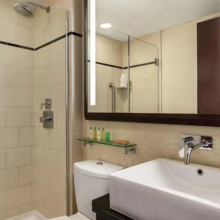 The New York City hotel is located 0.2 miles from South Ferry subway station and a mere 0.7 miles from St Joseph's Chapel Catholic Memorial at Ground Zero. Times Square is around 15 minutes' drive away, while National Museum of the American Indian is a minute away from the Doubletree By Hilton New York Downtown.