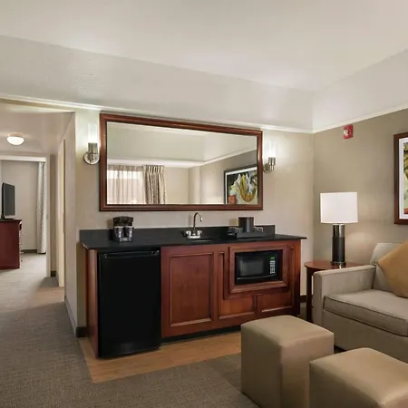 The Embassy Suites has Eterie Grill restaurant, which specializes in American cuisine. There are a lounge bar and an American restaurant on site.