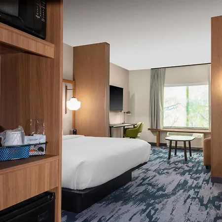 Thanks to a golf course, guests can stay fit at the Fairfield By Marriott Inn & Suites.