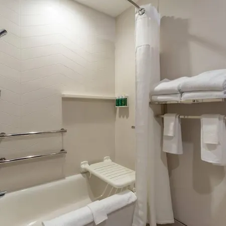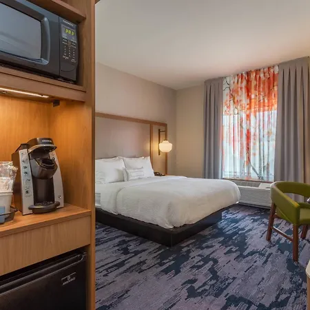 The rooms at the Fairfield Inn & Suites have blackout curtains, an ironing set, and climate control. Some of them comprise a sitting area and an outdoor dining area, appointed with a couch set and a writing desk. Along with a coffee machine, they also have a multi-channel television to keep you entertained. Providing a roll-in shower and a bathtub, the bathrooms are also equipped with a hair dryer and bath sheets.