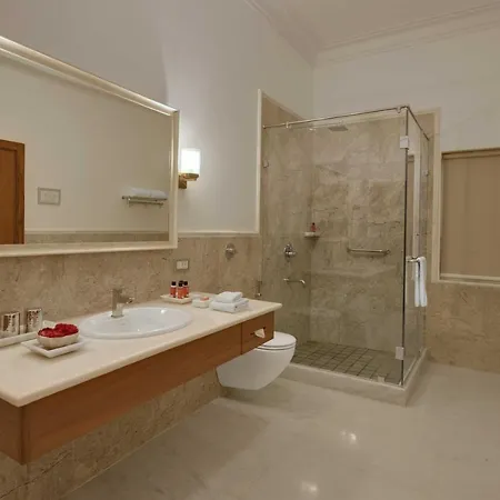 Some of the non-smoking rooms have a balcony and a dressing area, and such facilities as high-speed internet and a flat-screen TV with satellite channels, along with a mini-fridge-bar, coffee and tea making equipment. Nice touches in these spacious rooms include big windows along with a couch and a writing table. Bathrooms include a separate toilet, along with comforts such as a drier and bathrobes. The rooms of the heritage hotel look out over Aravali Mountains.