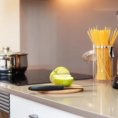 This property provides a kitchenette area fitted with a microwave oven, a full-sized refrigerator, and a freezer. The accommodation is a minute's walk from Mas Frankfurt, a place to dine at.