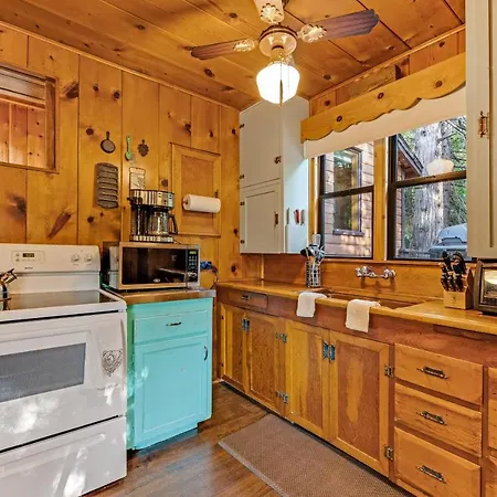 A microwave oven, tea and coffee making facilities, and a kitchenware are also included in the kitchen at this Idyllwild property.