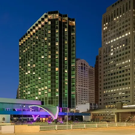 Offering a central location right off expressway, the 4-star Fort Pontchartrain Detroit, A Wyndham Hotel is only 9 minutes' walk from Campus Martius Park. Located 0.3 miles from The Guardian Building and within close proximity of Detroit People Mover, the non-smoking hotel features a sauna, spa therapy, and a shared lounge.