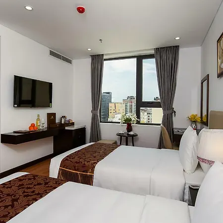 Nestled about a 5-minute walk from My Khe Beach, the 4-star Golden Line Hotel Danang offers a shared lounge and various recreational opportunities. Featuring 75 rooms with views of the town, this hotel is 2 miles from Banh mi eating.