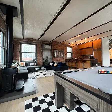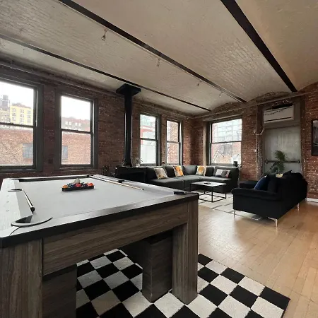 Gramercy Park Penthouse apartment provides guests with a patio and a seating area, as well as such modern comforts as climate control. For added convenience, a bathtub, a separate toilet, and a shower are available at the apartment. Additionally, you'll find a dryer and towels.