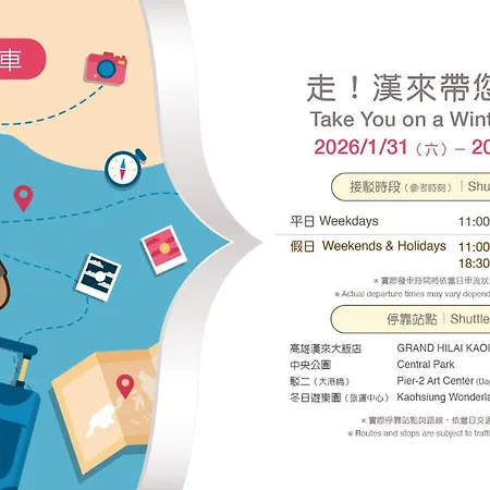 Grand Hi Lai Hotel Kaohsiung, located a mere 7 minutes' stroll from Zi Zhu Military Village, offers a swimming pool, Wi-Fi in public areas. Nestled in a business area, the cozy 5-star hotel is ideally situated 1.9 miles from family attractions like Kaohsiung City Shou Shan Zoo.