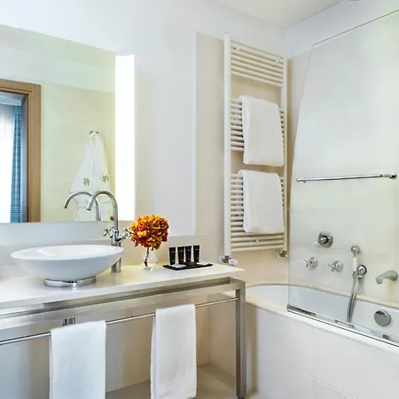 The 56 rooms at Grand Hotel Alassio Beach & Spa Resort - The Leading Hotels Of The World include an adjoining terrace and a balcony. Some of the rooms feature modern-style decor furnished with a writing table and a couch bed. Some modern rooms have panoramic views of the garden. Bathroom amenities include a bidet, a walk-in shower, and a separate toilet, along with comforts such as hairdryers and towels.