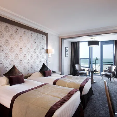 The impressive Grand Hotel Des Thermes Saint-Malo lies in a shopping area of Saint-Malo 25 minutes' walk from Quai Saint Malo Convention Center, featuring a sauna, a sun deck, and a sun terrace. Located just around the corner from Les Thermes Marins de Saint-Malo Wellness Center, the 5-star beachfront hotel with views of the sea is well-known for its amenities including a Turkish steam room, a solarium, and a spa bath.