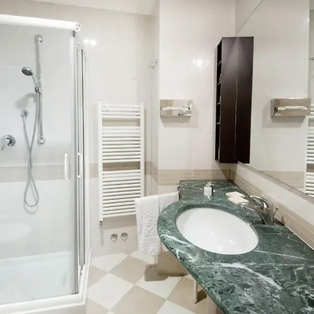 The rooms are decorated with a modern interior and offer complimentary wireless internet and a flat-screen TV with satellite channels, along with a mini-fridge-bar. The rooms have elegant furniture featuring a writing table. The modern bathrooms include a shower, and amenities such as dressing gowns.