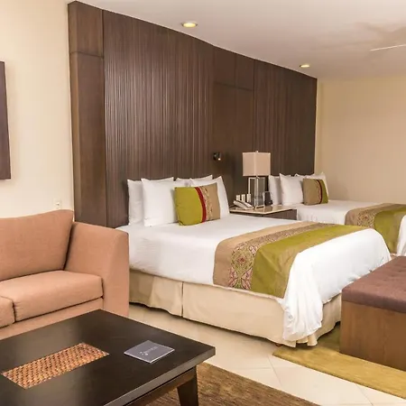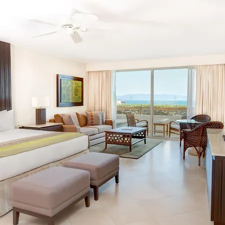 This Nuevo Vallarta hotel has 267 rooms with an individual terrace and a seating area. High-speed internet and a flat-screen TV with satellite channels along with a mini bar fridge, coffee and tea making equipment are provided. Bathrooms inlude a separate toilet and a shower, and such fine comforts as hair dryers and a shower cap.