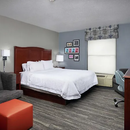 The rooms at the Hampton Inn include individual climate control, a central heating, and an iron. Some of them comprise a lounge and a kitchenette, furnished with a couch set and a writing table. These spacious rooms also have a mini bar fridge and a coffee machine as well as a personal safe to keep your belongings safe. Some rooms feature views of the inner courtyard.