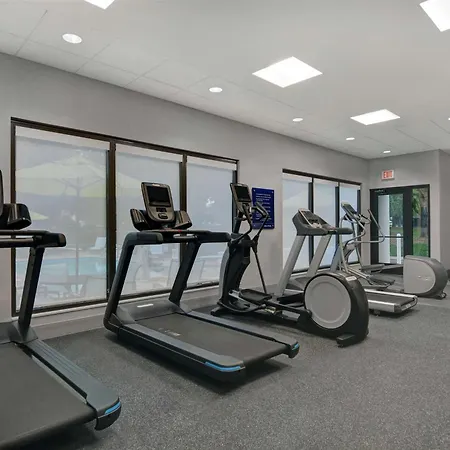 Beach facilities at the Hampton Inn include lounge chairs. Guests can work out in a fitness suite during their stay.