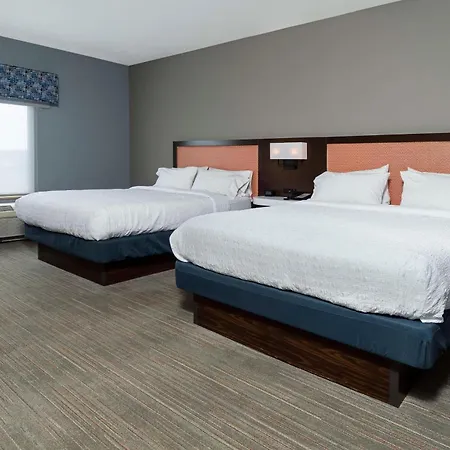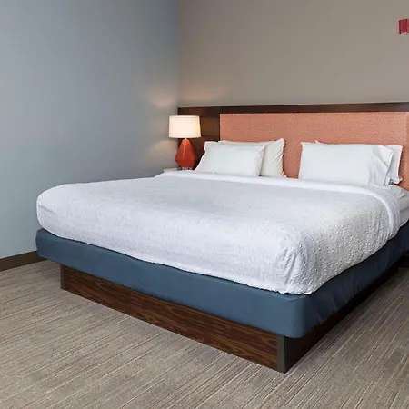The rooms at the Hampton Inn include individual climate control, central heating system, and an iron. Some of them comprise a seating area and a kitchenette, furnished with a couch and a writing desk. They come equipped with a mini fridge bar and a coffee maker for self-catering along with WiFi and a television with satellite channels for business and leisure. Some of the contemporary rooms have views of the inner courtyard.