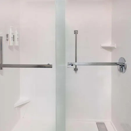 An iron and ironing board, along with coffee and tea making equipment, provide in-room convenience at the Hampton Inn Hartford Airport. They are furnished with couch beds along with a writing table and a couch bed. A separate toilet and a shower, along with such comforts as dressing gowns, are also provided.