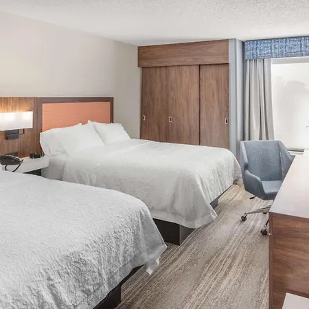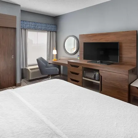 The 3-star Hampton Inn Joliet-Plainfield I-55, located in the shopping district of Joliet, offers 24 hour front desk assistance and express check-out and also stands approximately a 20-minute walk from Saint John Lutheran Church. Situated next door to Cinemark Louis Joliet Mall, the non-smoking hotel offers a swimming pool, a casino, spa therapy, and barbecue grills for guest enjoyment.