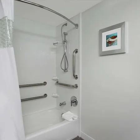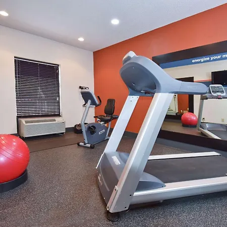There is a fitness room at the Hampton Inn. This hotel also provides a meeting room for those arriving on business.