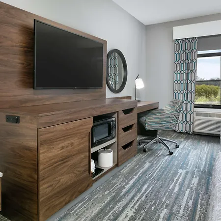 Thanks to a golf course, guests can stay fit at the Hampton Inn.