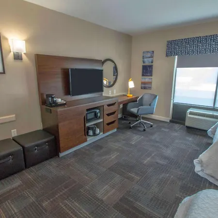 The non-smoking Hampton Inn & Suites Chesapeake-Battlefield Boulevard welcomes guests to 104 air-conditioned rooms. Some of them come with a flat-screen TV with satellite channels and cable channels along with an electric kettle and a coffeemaker. Furnished with a couch and a writing table, these rooms have a sitting area and a kitchenette. Some rooms look out onto the garden. The Chesapeake property also offers a house with an a handy kitchenette including a microwave oven, coffee/tea making machines, and a fridge.