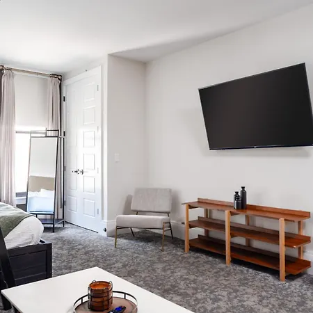 The Louisville property offers rooms with a sitting area and a kitchen featuring air conditioning, along with a flat-screen TV with satellite channels. Bathrooms feature a tub, a separate toilet, and a shower along with hair dryers and shower caps.