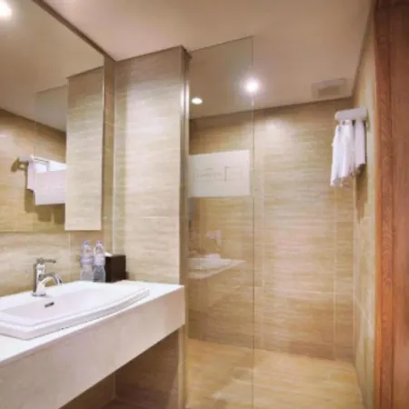 Some of the oundproof rooms have a balcony and a terrace, and such facilities as complimentary Wi-Fi and a flat-screen TV with satellite channels, along with a mini-fridge-bar, tea and coffee making equipment. Guests can also use a separate toilet, along with such amenities as bathrobes and slippers. Rooms of the hotel overlook the pool.