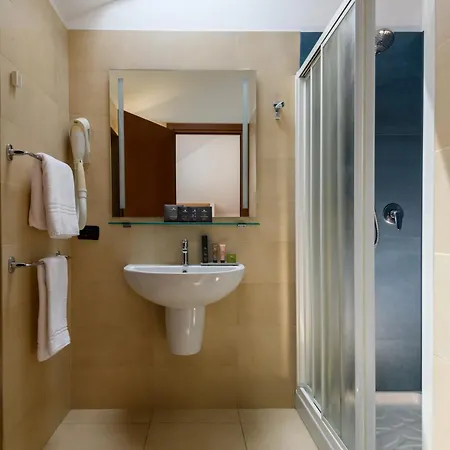You can choose from one of the 41 sound-proofed rooms with a flat-screen TV, and self-catering amenities like a mini-fridge-bar. Separate bathrooms include nice touches such as bathrobes and slippers.